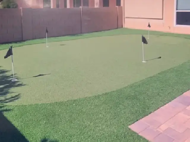 For golf enthusiasts, we offer specialized putting green turf with precise ball roll characteristics and firm surfaces that replicate actual golf course conditions. Our putting green installations can include multiple cup positions, undulations, and fringe areas to create a comprehensive practice facility right in your Chandler backyard.